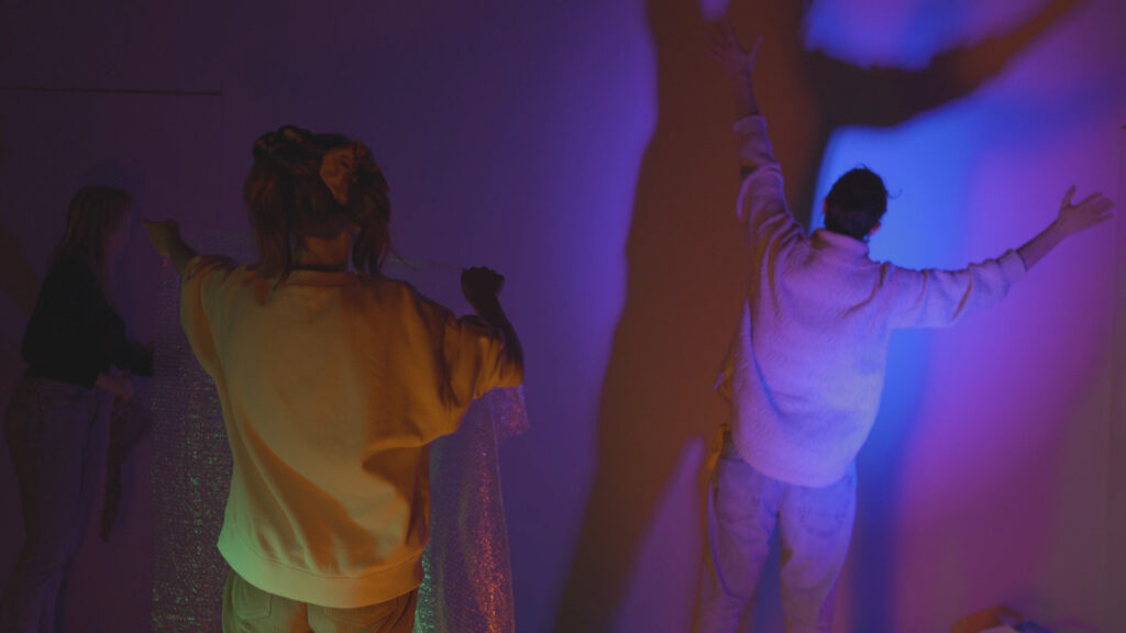 • Minimalistyczne elementy: wykorzystanie prostych geometrii, takich jak sześciany, prostokąty lub trójkąty stworzone z tektury lub drewna, aby zbudować przestrzeń, która wyznacza granice akcji.
