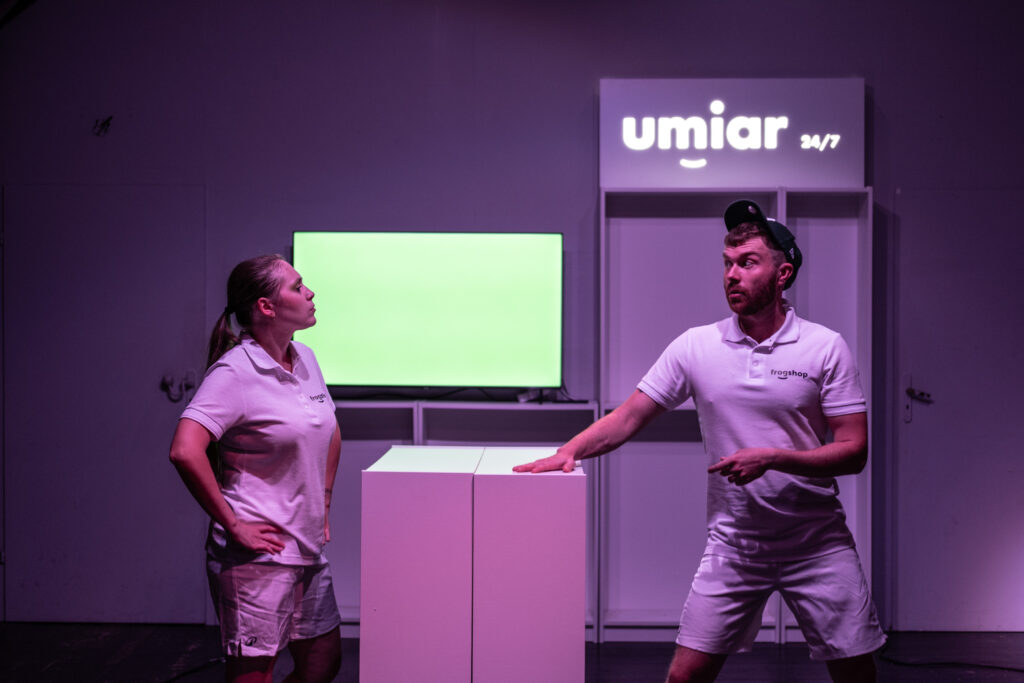 Spektakl Frogshop opowiada historię o tym, jak żaba połknęła kraj w całości i nawet się nie zakrztusiła.